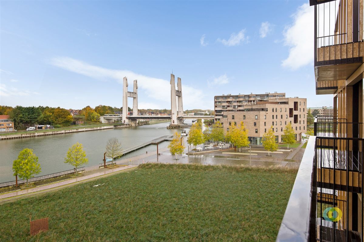 Modern appartement met 2 slaapkamers, terras en prachtig zicht op de vaart. Op de 4de verdieping van een recente nieuwbouwresidentie bevindt zich dit prachtige appartement met een stijlvolle afwerking, veel lichtinval en een adembenemend uitzicht op de vaart.Bij het binnenkomen word je verwelkomd in een ruime inkomhal die toegang geeft tot alle vertrekken. De lichtrijke leefruimte met open indeling vormt het hart van het appartement en biedt een prachtig uitzicht op het water. De volledig ingerichte open keuken is voorzien van alle moderne toestellen en biedt voldoende kastruimte.Aansluitend is er een praktische berging met aansluiting voor wasmachine en extra opbergruimte. Via de hal bereik je de twee mooie slaapkamers, het aparte toilet en de stijlvolle badkamer met inloopdouche, dubbele lavabo en ingemaakte kasten.Het ruime terras is de ideale plek om te genieten van de zon en het uitzicht op de vaart — perfect voor een rustig ontbijt of een gezellige avond.In de huurprijs is ook een binnen staanplaats met laadpaal in de ondergrondse parking inbegrepen en een privé fietsen box. Het gebouw heeft ook een fietsenstalling. Lasten: 180€ (provisie verwarming + gemeenschappelijke delen)