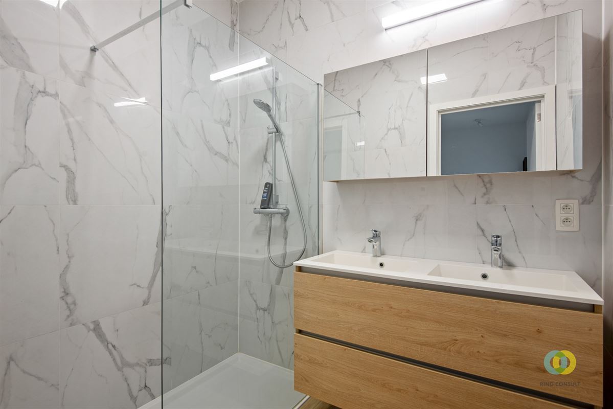 • Badkamer 1:5 m2inloopdouche, dubbele lavabo