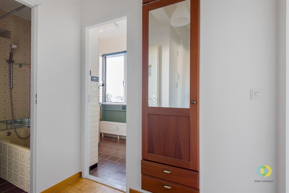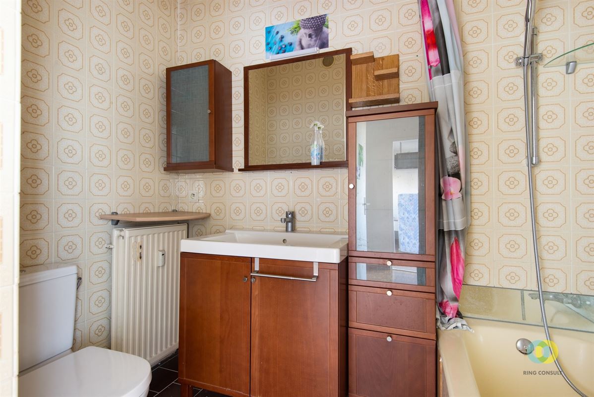Ce studio est situé à Evere, au 9e et dernier étage d'un grand immeuble. Un ascenseur dessert les 8 étages. Le studio dispose d'un espace de vie lumineux avec accès à la terrasse orientée sud, où vous pourrez profiter du soleil et de la vue sur Bruxelles. Il y a également une salle de bains séparée avec baignoire et douche, ainsi que des toilettes. La cuisine est compacte et fonctionnelle. Le hall d'entrée est équipé de placards intégrés pour un espace de rangement supplémentaire. L'appartement dispose également d'une cave privée.